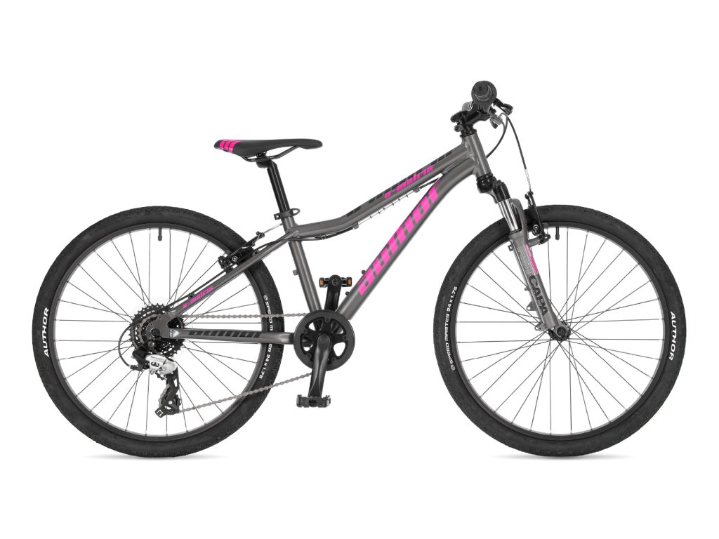 Nejprodávanější model v kategorii 24“ kol je dlouhodobě Author A-Matrix 24. Je určen pro děti ve věku 6–9 let a výškou 125–140 cm. Univerzální model zvládne rodinné vyjížďky v pohodovém tempu i dobrodružnější výpravy na terénní traily v přírodě. Nebojí se ani občasného sportovního nasazení při dětských závodech. To vše zvládne za rozumnou cenu a představuje tak ideální volbu pro ty, kteří preferují vynikající poměr cena/výkon. Disponuje lehkým duralovým rámem a odpruženou vidlicí RST s měkkou pružinou. Pro lehčí ovládání má model jednopřevodník vpředu a 8 rychlostmi vzadu, to vše ovládané klasickým otočným řazením s polohami Shimano Revoshift. Dvě barevná provedení, vidlice a sedlo ladící barevně se zbytkem kola. O bezpečné zastavení se postarají kvalitní značkové brzdy Tektro. To je v kostce jedno z nejoblíbenějších dětských kol.
