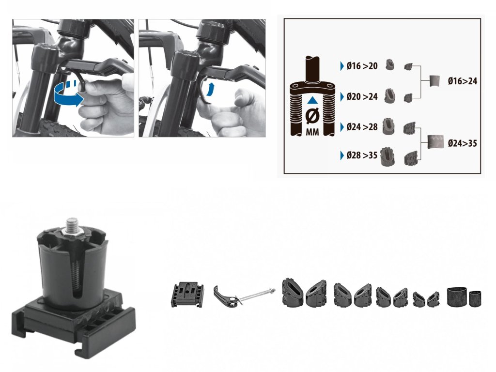 - Adaptér pro uchycení držáku do sloupku přední vidlice o průměru 1,5" Tapered.