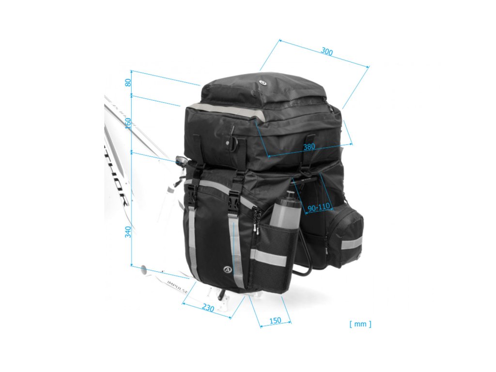 - Rozměry: 56 × 34 × 30 cm, (max. šířka horní plochy nosiče 110 mm).