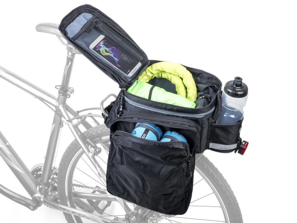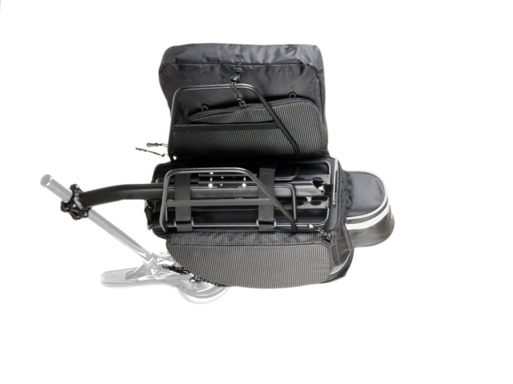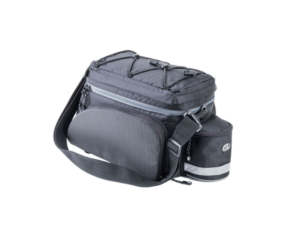 Brašna AUTHOR A-N441 s pevnými polstrovanými stěnami a dnem. Hlavní kapsu a postranní kapsy jednoduše zmenšíte/zvětšíte dle obsahu. Universální a snadné upevnění na nosič pomocí popruhů se suchým zipem. Součástí brašny je ramenní popruh pro snadné přenášení. Konstrukce kombinuje panely vyztužené EVA pěnou s přizpůsobivou tkaninou pro dostatečnou pevnost brašny a ochranu převážených předmětů. Nylon 420 D s PU zátěrem je tkanina s vysokou pevností, vodě a otěru odolná.