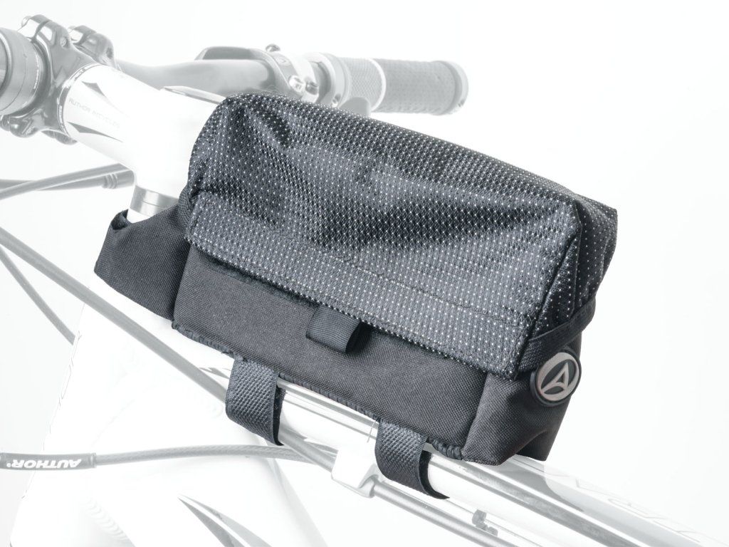 Nepromokavá brašna na horní rámovou trubku, univerzální uchycení pro většinu typů rámů, 3 samostatné polstrované kapsy. Rozměr l. 15 × š. 4 × v. 10 cm.