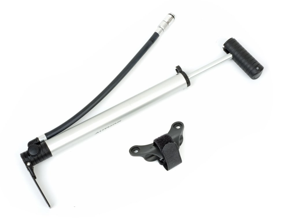 Držák pro uchycení na navářky pro košík, koncovka s otočnou redukcí pro ventil FV / AV / DV, ergonomická nastavitelná rukojeť, výklopná opěrka pro nohu, materiál AL6061, max. tlak 120 PSI (0,83 MPa), rozměr d. 23 × l. 300 mm, hmotnost: 150g (včetně držáku).
