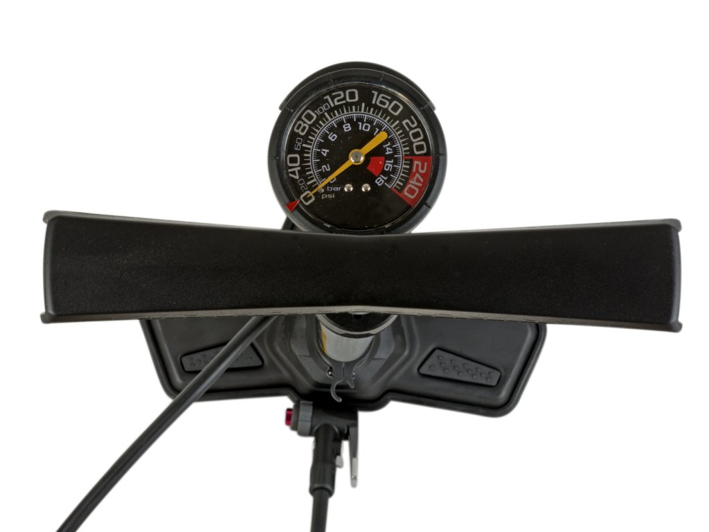 Nožní hustilka AUTHOR AirBar Tubelles se zásobníkem vzduchu pro snadné nahuštění bezdušových plášťů. Přepnutí do režimu „Tubeless“ umožňuje uživateli nahromadit velké množství vzduchu v zásobníku a jeho jednorázové vypuštění do pláště. Manometr na horní části pro snadné čtení.