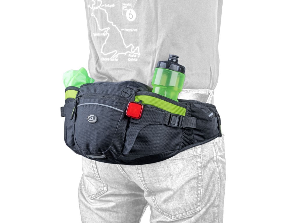 Ledvinka AUTHOR GALE s kompresními kapsami na dvě láhve. Kompresní popruhy pomohou stáhnout obsah ledvinky a zajistí stabilitu i při dynamickém pohybu. V horní části hlavní kapsy je umístěna samostatná kapsa na zip pro přepravu peněženky nebo mobilního telefonu. Záda jsou příjemně polstrována jemnou síťovinou zaručující dostatečný průchod vzduchu. Kapsa na zip na každé straně upínacího popruhu pro uložení malého občerstvení, klíčů nebo kapesníků. Reflexní prvky pro zvýšení bezpečnosti.