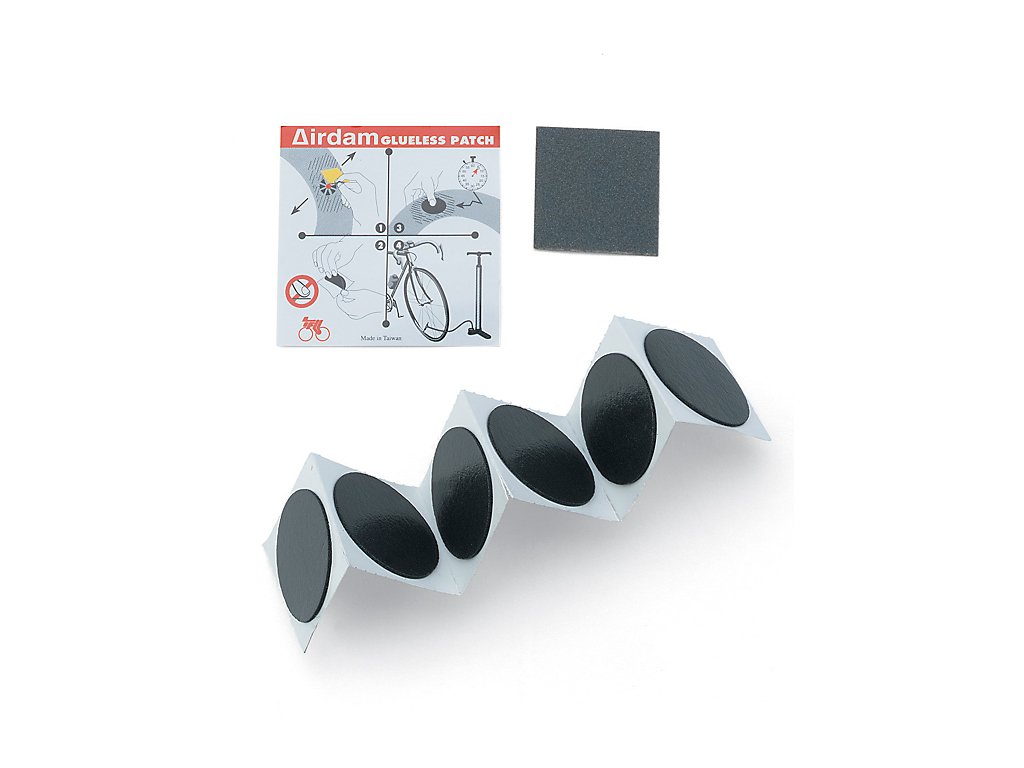Sada obsahuje 6 samolepicích záplat a zdrsňovač, velmi rychlé a jednoduché použití, miniaturní skladné balení, vhodné pro všechny typy veloduší.