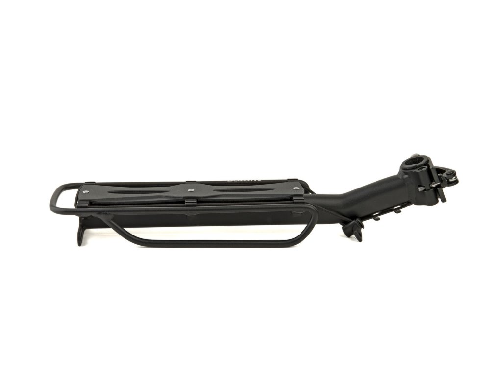 Materiál AL6061, univerzální úchyt na sedlovku d. 25 - 34mm, rychloupínací páčka pro snadnou a rychlou montáž / demontáž. Nosnost nosiče 10kg (nosnost je limitována pevností sedlovky), ložná plocha 29x11cm, hmotnost 730g. Tento nosič vyžaduje odbornou montáž.
