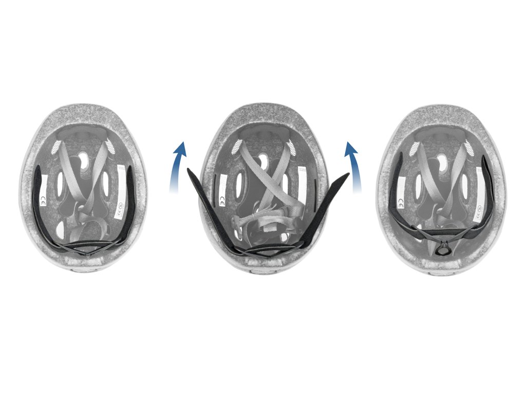 - Jednoduchý upínací sytém – rychlé nastavení obvodu vnitřní čelenky pomocí suchého zipu, zaručuje tak snadné a rychlé nasazení přilby na hlavu dítěte.