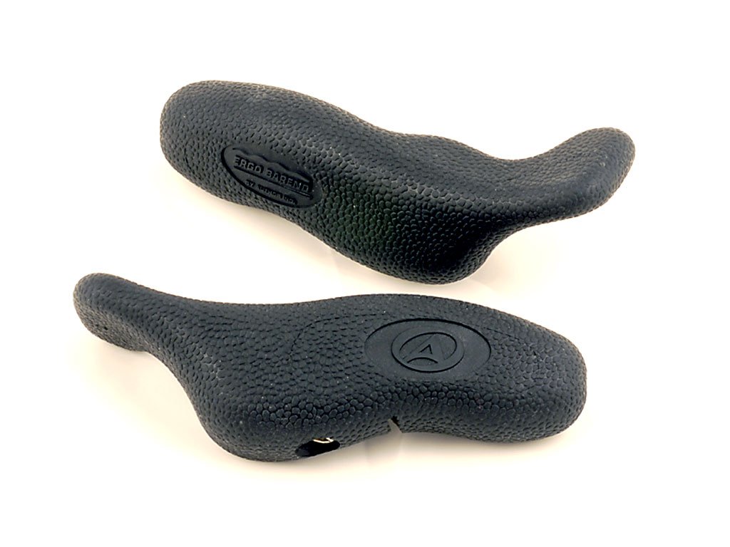 Rohy s ergonomickým tvarem, velmi komfortní úchop, povrch z měkčené pryže, vnější uchycení na řídítka, materiál AL6061T6, hmotnost 141g.