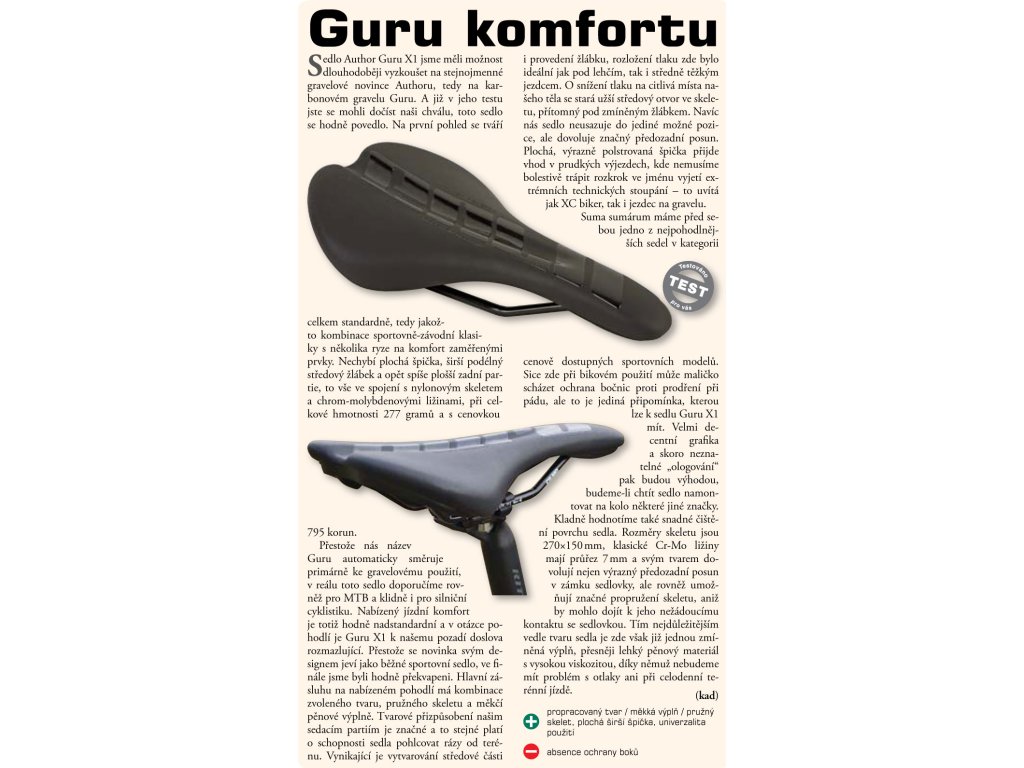 Sedlo AUTHOR GURU je kvalitní sedlo určené pro komfortní posed na různých typech kol. Rozšířený tvar sedla, lehká pěnová výplň s vysokou viskozitou zaručuje velmi komfortní posed.