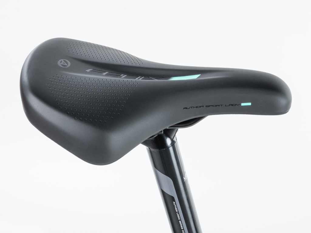 Jeden ze základních dámských modelů 29“ horských kol v nabídce značky Author. To je Solution 29 ASL, navržený s ohledem na co nejlepší cenu a zároveň solidní výbavu. Duralový rám se může pochlubit speciální dámskou geometrií, vnitřním vedením řadicích bovdenů, odlehčenými patkami s přípravou na montáž integrovaného stojánku a závitovými otvory na nosič a blatníky. Odpružená vidlice RST disponuje mechanickým zamykáním a speciální měkčí pružinou s nastavitelným předpětím. Řazení je opět v režii spolehlivé sady Shimano Alivio s tradičním počtem rychlostí 3 × 9. Zastavení mají na starost velice účinné a bezproblémové hydraulické kotoučové brzdy Tektro. Jak je u značky dobrým zvykem, ostatní komponenty jsou vlastní produkce Authoru. Nadstandardním komponentem v této třídě jsou určitě značkové pláště Vittoria s nízkým valivým odporem. Samozřejmostí je pohodlné dámské sedlo a měkké komfortní gripy. Ideální model pro začínající nenáročné jezdkyně, které si mohou vybrat z 2 různých velikostí a dvou barevných variant.