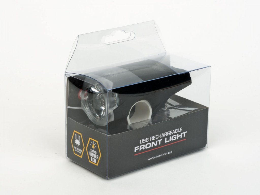 Author Nero 300 lm je USB dobíjecí světlo s velkou parabolou a LED čipem se svítivostí 300 lumenů. Tělo je vyrobeno dvojitým vstřikováním – plastová skořepina je integrována do obalu ze silikonové pryže, díky tomuto provedení je světlo velmi odolné proti mechanickému poškození. Upínací silikonový řemínek je součástí silikonového krytu a umožňuje tak jednoduché univerzální uchycení včetně oválných profilů. Toto světlo nabízí 4 režimy, které se přizpůsobí jízdě ve městě nebo v terénu. Author Nero 300 lm je vybaveno COLLIMATTOR TECHNOLOGY – nejnovější technologie výroby skla a paraboly, která zvyšuje světelný výkon a optimalizuje tvar osvětlené plochy. Světelný výkon je rovnoměrně rozložen na celou osvětlenou plochu, nikoliv pouze do středu. Transparentní výřezy na stranách paraboly umožňují průchod světla a zvyšují tak úhel viditelnosti na 180 stupňů. Velmi praktický je indikátor kapacity baterie, který je integrován do horní části paraboly a informuje Vás o stavu baterie, snadno tedy můžete změnit režim svícení nebo dobít baterii tak, abyste nikdy nezůstali bez světla.