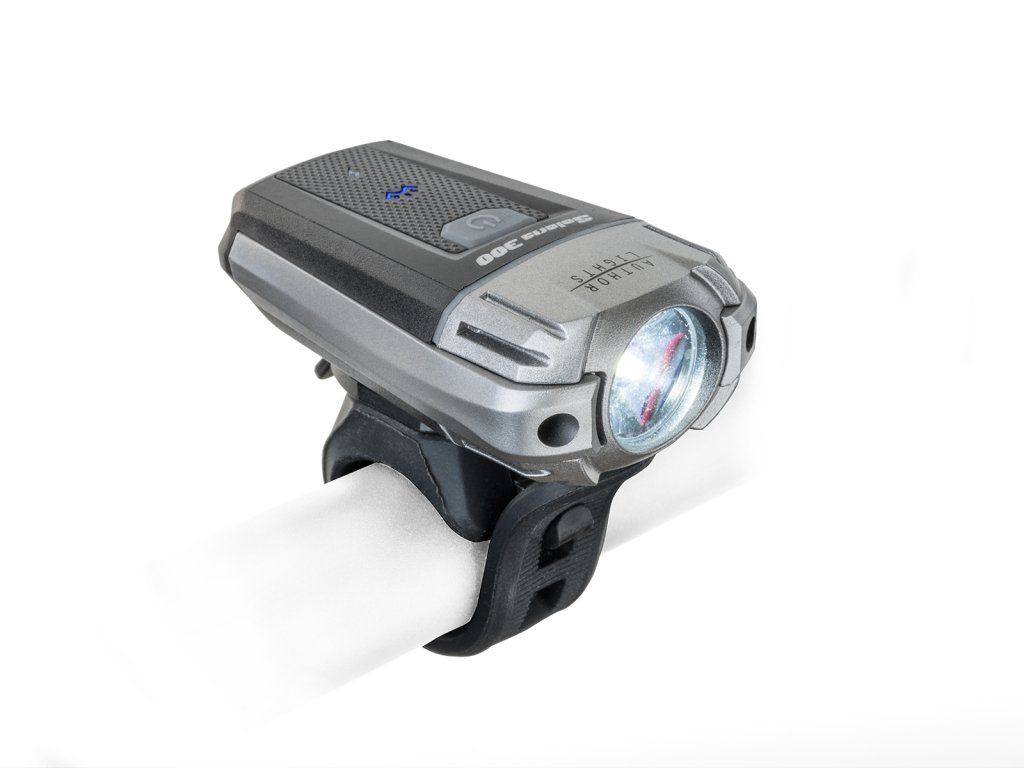 Author Solaris 300 lm je světlo s eliptickým tvarem osvětlené plochy a 300 lumeny světelného výkonu pro skvělou viditelnost, díky které zjistíte nebezpečí v dostatečném předstihu a včas zareagujete. Na horní plošce je umístěn indikátor světelného výkonu a také indikátor baterie, který Vás včas upozorní na pokles její kapacity.