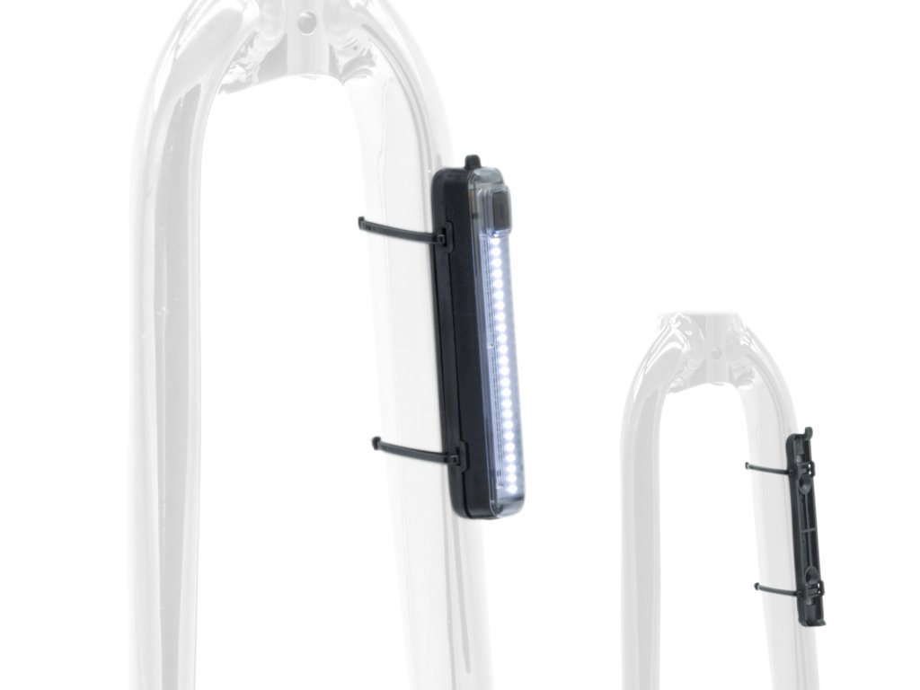 - rozebíratelnou stahovací páskou na kulaté, oválné i hranaté profily nebo popruhy batohů a brašen. Součástí balení je napájecí kabel USB-A / USB-C, 2× šroub M5 s maticí a podložkou, dvě rozebíratelné stahovací pásky (d. 300 × š. 5 mm).