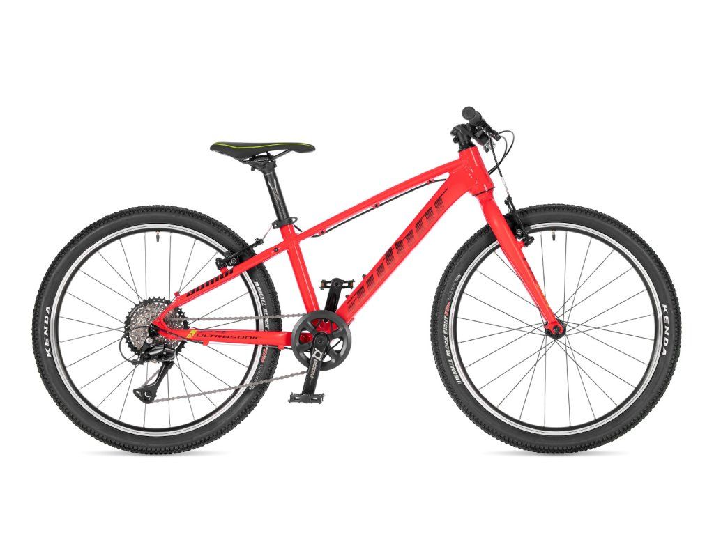Dětské kolo Author Ultrasonic 24 nabízí nepřekonatelnou rychlost a závodní geometrii. Je určeno pro děti s výškou 125–140 cm. Ultralehký hydroformingem tvarovaný rám je doplněn o pevnou duralovou vidlici. Vše je zde zaměřeno na nízkou hmotnost a maximální výkon. Proto jsou zde lehké ráfkové brzdy Tektro, jednopřevodníkový systém řazení Shimano Acera s 8 rychlostmi vzadu a skládací kevlarové pláště Kenda s jemným vzorkem. Podařilo se tak dosáhnout příznivé hmotnosti pod 10 kg. Kolo je velmi rychlé na asfaltových cestách, ale neztratí se i na lehčích terénních tratích. Bude vyhovovat i ambiciózním závodníkům, kteří dávají přednost rychlosti před pohodlím. Nabízí se v barevné variantě vhodné pro kluky i pro holky. Skvělá volba rodičů, kteří vědí, co je pro jejich potomka nejlepší.