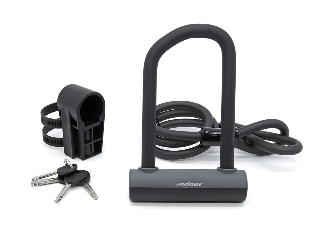 Cyklistický U zámek AUTHOR AUL Cliff ART je přenosný a odolný. Speciální tvar třmenu U-zámku s vinylovým povlakem odolným vodě, prachu a nečistotám. Součástí je ocelové lano a držák s stahovatelnými objímkami, který snadno připevníte na rám kola nebo na sedlovku. Odolnost U-zámku je certifikována nezávislou nizozemskou laboratoří ART.