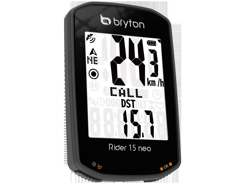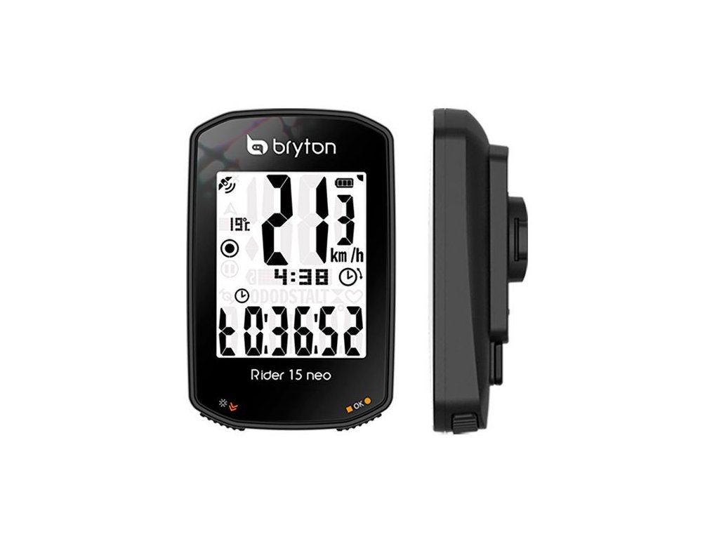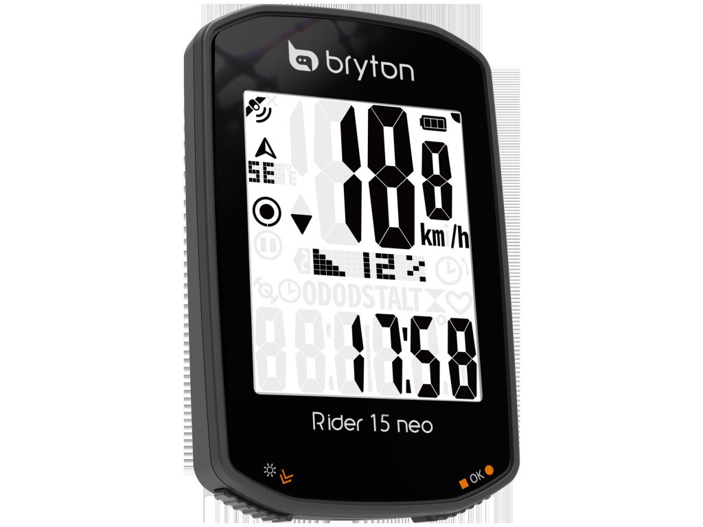 Rider 15 neo je vybaven přehledným 2" displejem a 3 intuitivními tlačítky, vylepšeným softwarem, více než 21 funkcemi a orientačním režimem pro zobrazení směru, kterým jezdec jede. Obsah balení Ride 15 neo, návod, USB, BIKE MOUNT - držák pro Rider Větší, vylepšený displej Díky využití velkého 2" displeje na Rider 15 neo jsou na zvětšené mřížce údaje o rychlosti ještě přehlednější. Vysoce kvalitní displej poskytuje křišťálově čistý obraz z jakéhokoli úhlu a bez rušivých vlivů. Absolutní přesnost Díky podpoře globálního navigačního družicového systému (GNSS) má Rider 15 neo rozsáhlejší pokrytí a větší dosah v jakékoliv zeměpisné poloze, včetně rozsáhlých lesů a budov nebo v horách. Pokryje také širší škálu regionů díky zapojení satelitů GPS (USA), Galileo (EUR) a QZSS (Japonsko). Výkonná baterie Cyklocomputer Rider 15 neo je vybaven výkonnou 16hodinovou baterií a podporou nabíjení z powerbanky na cestách, takže vám pomůže zdolat jakoukoli vzdálenost nebo vrchol! Podporuje až 21 funkcí Zařízení přináší 21 funkcí a bohaté datové podklady pro přesné měření výkonu při každé jízdě, které lze zobrazit v analýze tréninku v doprovodné aplikaci Bryton Active (k dispozici pro iOS a Android). Rider 15 neo také integruje snímače rychlosti, kadence a srdečního tepu Bluetooth včetně snímačů třetích stran pro bezproblémovém spárování. Chytrá oznámení Po snadném nastavení pomocí aplikace Bryton Active App uvidíte telefonní oznámení, včetně hovorů, textových zpráv a e-mailů, přímo na displeji Rider 15 neo. Tato funkce pomáhá udělat z počítače Rider 15 neo chytrého cyklistického společníka pro každého uživatele. Osvětlete své jízdy Noční jízda se právě stala mnohem přesnější! Vysoce kontrastní obrazovka Rider 15 neo je vybavena vestavěným podsvícením a lze ji jasně osvětlit pro jízdu ve špatně osvětlených oblastech nebo pro pohodlnou jízdu v noci. Počítač lze kombinovat s jakýmkoli příslušenstvím pro jízdní kola a nedochází u něj k rušení jinými připojenými zařízeními nebo světly LED. Přizpůsobitelná data, zobrazení prostřednictvím aplikace Přizpůsobte si zobrazení dat pomocí aplikace Bryton Active! Po spárování s aplikací Bryton Active App lze datová pole/stránky přizpůsobit na základě tréninkových cílů prostřednictvím připojeného telefonu, a to velmi snadno! Synchronizace s Bryton Active App Užívejte si bezproblémovou synchronizaci over-the-air se všemi novými aplikacemi Bryton Active App. Tréninková data lze automaticky synchronizovat prostřednictvím BT ze zařízení do aplikace Bryton Active App, kde lze zobrazit pokrok a grafickou analýzu a sdílet jízdy na sociálních sítích. Uživatelům umožňuje synchronizovat a plánovat tréninky, stahovat plánované výlety, upravovat nastavení zařízení a sítě a kalibrovat nadmořskou výšku, a to vše bez připojení k síti WLAN. Aplikace také kontroluje verzi firmwaru a údaje GNSS zařízení a upozorňuje uživatele na dostupnost aktualizací, čímž zajišťuje, že je vždy nainstalován nejaktuálnější firmware. Díky jednoduchému nastavení aplikací Bryton Active App STRAVA, TrainingPeaks a Selfloops Auto Sync je také snazší sdílet aktivity a porovnávat se s miliony.Doplňkové parametry