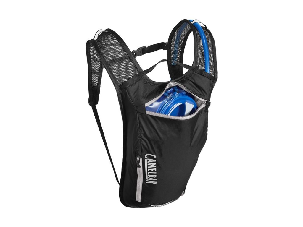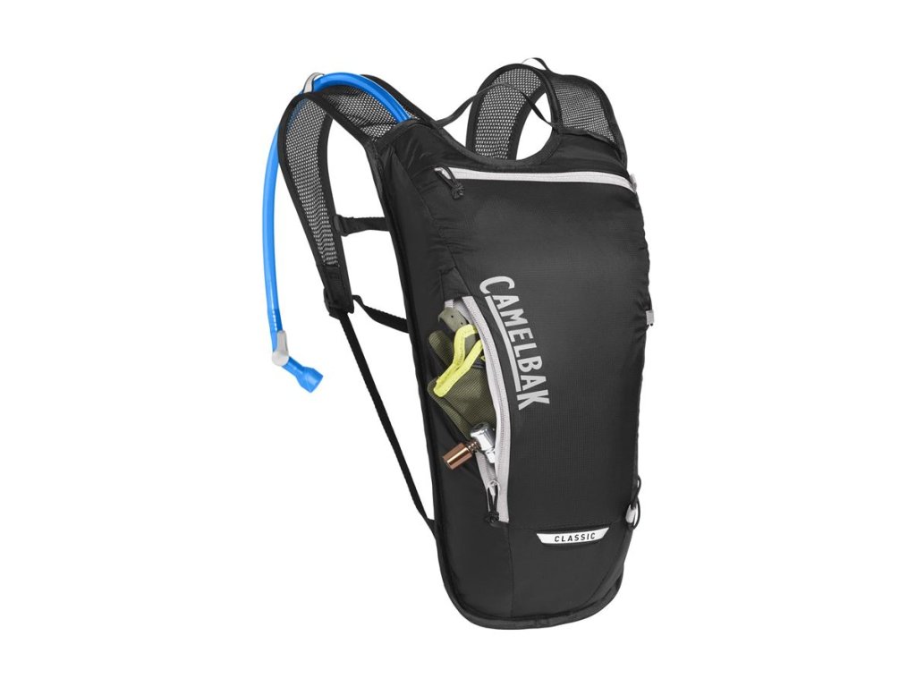 VLASTNOSTI lehké a prodyšné materiály, odvětrané popruhy, bezpečnostní kapsa, nastavitelný hrudní popruh, poutko na blikačku, úchyt na hadičku Tube Trap