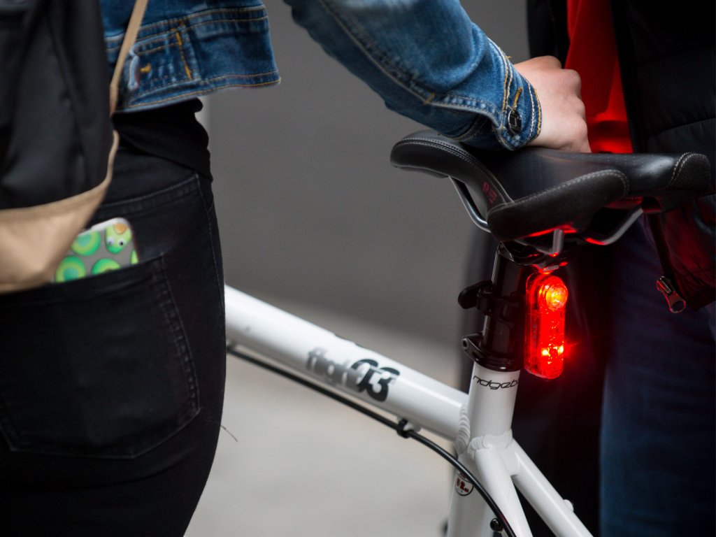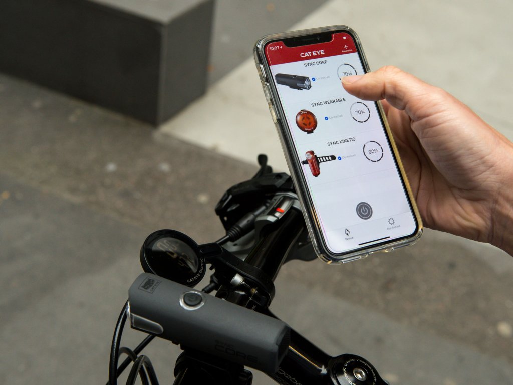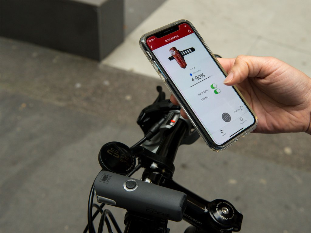 Zadní "brzdové" světlo - blikačka CATEYE s funkcí funkcí synchronizace s předním světlem (SYNCCore) a mobilním telefonem (aplikace CatEyeSYNC). Obě světla lze pak zapnout a vypnout pouze jedním tlačítkem a pomocí mobilní aplikace kontrolovat stav baterie a vybírat používané režimy svícení. Světlo má výkon až 50lm s viditelností 180° a využívající technologii, která umí rozpoznat zpomalení. Pokaždé když zpomalíte se světlo přepne do nejvyšší intenzity svícení (na 2,5s) a upozorní jezdce/řidiče za vámi, že brzdíte. Světlo má také režim svícení pro jízdu ve skupině nebo jízdu ve dne. Uchycení pomocí gumičky. Kontrolka na stav baterie a automatické přepnutí do režimu blikání pokud se kapacita baterie výrazně sníží. Světlo je napájeno Li-pol baterií s USB dobíjením (2,5h). 6 režimů svícení - blikání s výdrží: až 1,5h - konstantní svícení (40lm) a 50h blikání podle vybraného režimu.