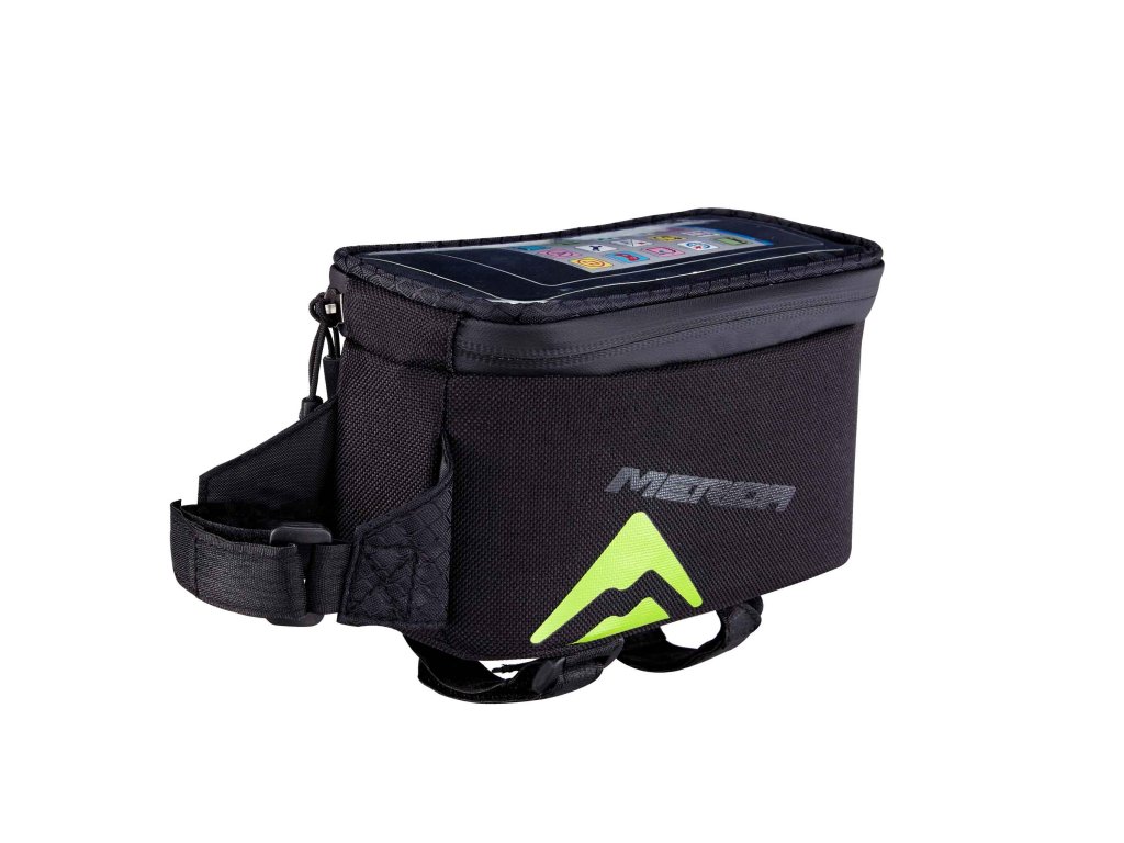 Brašna na horní rámovou trubku s průhledným okénkem pro smartphone, voděodolná, reflexní prvky.