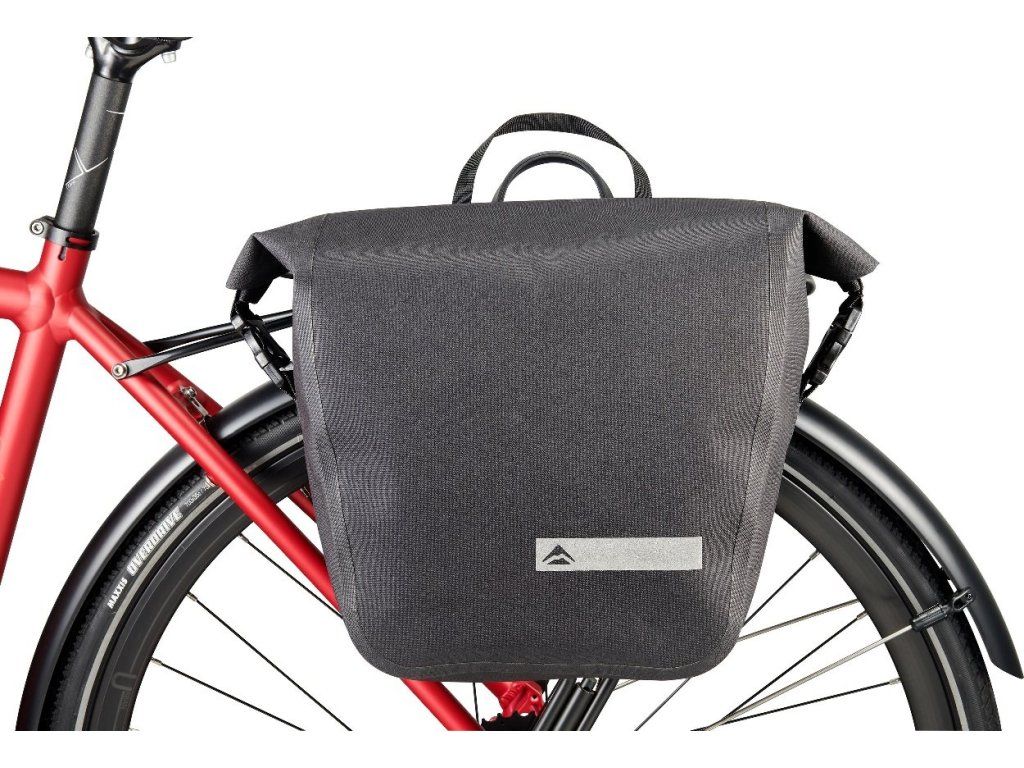 MERIDA - Brašna na zadní nosič, černo/šedá, 10L, voděodolná, reflexní pásky, hmotnost 750g.