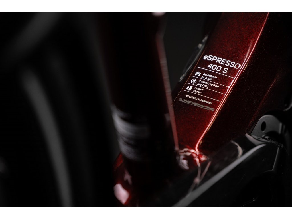 Rám: eSPRESSO LITE II; MAT aluminium; 700x50C (with fender) max. WHS; 142x12 AST; intube; max. 504 Wh Velikosti: XS(43)-S(47)-M(51)-L(55)-XL(59); eSPRESSO L XS(43L)-S(47L)-M(51L)-L(55L) Tlumič: Vidlice: Suntour NEX E25; Coil; 63 STR; 700x52C max WHS Brzdové páky: Brzdy přední: Shimano MT-200; 2 piston Brzdy zadní: Shimano MT-200; 2 piston Brzdový kotouč přední: Shimano RT10; 180 mm Brzdový kotouč zadní: Shimano RT10; 180 mm Řetěz: KMC e9S Chránič převodníku: Sunnywheel SW-CG-173A Kliky: Shimano CRE61; 38 ATC Přesmykač: Přehazovačka: Shimano ALIVIO M3100; SGS Kazeta: Shimano HG200; 11-36 ATC; 9 GER Pedály: VP VPE-891 Řídítka: MERIDA EXPERT; MAT aluminium; 660 WHB; 15 RHB Představec: MERIDA EXPERT CT; MAT aluminium; 31.8 DSH; adjustable Hlavové složení: MERIDA 2346 Neck Náboj přední: Shimano TX505; 100x9 WHF; 32 SPH; Centerlock Náboj zadní: Shimano MT400; 142x12 WHR; 36 SPH; Centerlock Ráfky: MERIDA COMP TK; 20 IWR; MAT aluminium Sedlo: MERIDA EXPERT TK; V-mount Sedlovka: MERIDA EXPERT CC; MAT aluminium; 34.9 DSP; 0 SSB Řazení přední: Řazení zadní: Shimano Alivio M3100 Paprsky: Black stainless Plášť přední: Continental Ride Cruiser; 622-50; wire; reflecting line Plášť zadní: Continental Ride Cruiser; 622-50; wire; reflecting line Zvonek: Alloy Stojánek: Massload CL-KA98 Přední světlo: Herrmans H-Black MR4 E Zadní světlo: Spanninga Commuter Glow XE integrated in MERIDA MIK HD carrier Motor: Shimano EP600 / 504 Wh Baterie: Shimano E8035; 500Wh Displej: Shimano SC-E5000Doplňkové parametry