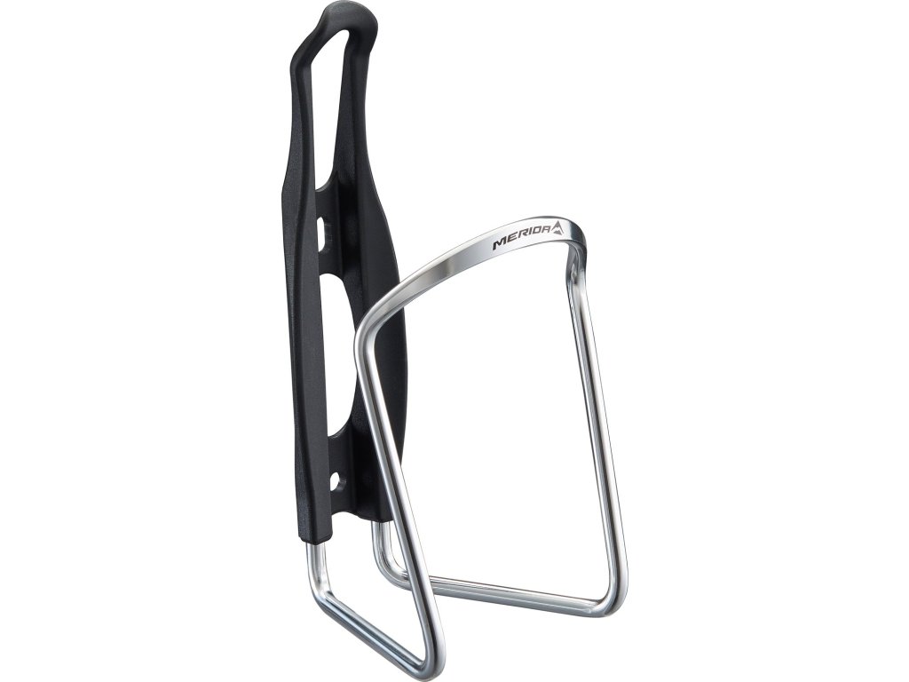 Klasický hliníkový košík na láhev s přídavným plastovým nosným rámem.