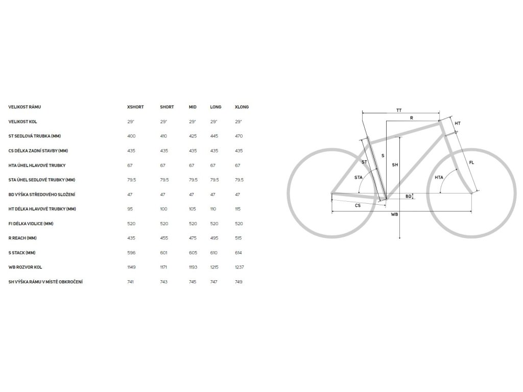 Rám: NINETY-SIX LITE V; 110 STR; MAT aluminium; 29x2.5" max. WHS; 148x12 AST; BSA BBR Velikosti: XShort-Short-Mid-Long-XLong Tlumič: SR Suntour Edge Plus 2CR; lockout Páčka sedlovky: remote included Vidlice: Suntour Raidon34 R-2CR; Air; 120 STR; Tapered; Remote lockout; 46mm fork offset; 29x2.4" max WHS (do not have 110) Brzdové páky: Brzdy přední: Shimano MT-200; 2 piston Brzdy zadní: Shimano MT-200; 2 piston Brzdový kotouč přední: Shimano RT10; 180mm Brzdový kotouč zadní: Shimano RT10; 180mm Řetěz: KMC X12 Chránič převodníku: Kliky: Shimano MT512; 32 ATC Délka klik: 170 mm XS and S, 175 mm-M up Středové složení: Shimano BB-MT-501; 24mm Přesmykač: Přehazovačka: Shimano Deore; SGS Kazeta: Shimano Deore M6100; 10-51 ATC; 12 GER Pedály: Gripy: MERIDA COMP EC Řídítka: MERIDA EXPERT CC; MAT aluminium; 760 WHB; flat Představec: MERIDA TEAM CC III; MAT aluminium; 31.8 DSH; -6 ASD Velikost představce: 60 mm all sizes Hlavové složení: Acros ICR MERIDA EXTERNAL neck; Upper and lower IPS sealing Ložisko: 1*10mm, 1*5mm, 1*2.5mm Náboj přední: Shimano TC500-B; 110x15 WHF; 32 SPH; Centerlock Náboj zadní: Shimano TC500-MS-B; 148x12 WHR; 32 SPH; Centerlock Zadní osa: MERIDA COMP TR; including removeable lever, 6mm allen key Ráfky: MERIDA COMP CC II; 25 IWR; MAT aluminium; tubeless ready Sedlo: MERIDA COMP SL; V-mount Sedlová objímka: MERIDA EXPERT Sedlovka: MERIDA EXPERT TR II; 34.9 DSP; 10 SSB; XS/S: 150 SPT - M: 170 SPT - L/XL: 200 SPT Řazení přední: Shimano SL-MT500-L Řazení zadní: Shimano Deore M6100 Paprsky: Black stainless Duše: Ultralite-29 Plášť přední: Maxxis Rekon Race; 29x2.25"; wire Plášť zadní: Maxxis Rekon Race; 29x2.25"; wire Zvonek: YWS-Alloy Držák lahve: Blatník: Hmotnost: 15,02 kg příslušenství: JD-AC67 34.9MM TO 30.9MM SEAT POST SHIMDoplňkové parametry