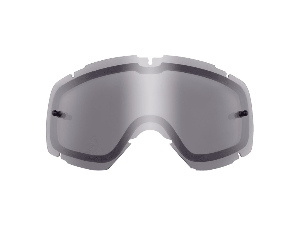 Šedé dvojité sklo pro normální až jasné světelné podmínky. Povrchová úprava odolná proti poškrábání, pro trvanlivost a snadné čištění. Dvojité sklo odolné proti poškrábání garantuje výhled bez zamlžení. Vysoce kvalitní 1,2 mm čočky odolné proti nárazu se 100% ochranou proti UVA/B/C záření. Filtrování škodlivých modrých paprsků pomocí povrchové úpravy Blue Blocker. Antireflexní povrchová úprava. Integrované piny pro strhávačky. Splňuje normu EN1938 pro motocyklové brýle a všechny CE normy. K dispozici jsou jednoduchá a dvojitá náhradní skla v čiré, šedé, radium blue a radium red barvě. Silver mirrored pouze jako jednoduché (ne dvojité) sklo.Doplňkové parametry