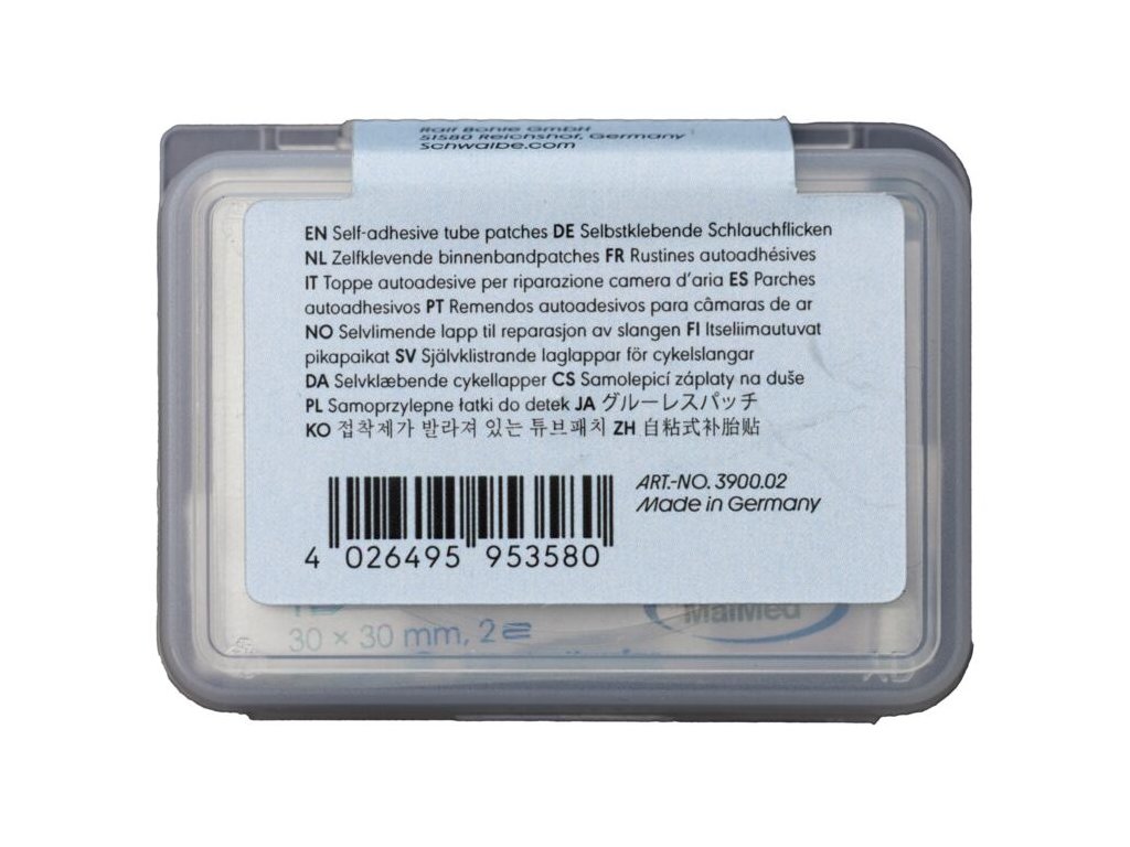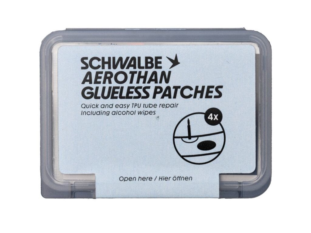 S pomocí samolepicích záplat Schwalbe lze díru v duši Aerothan opravit snadno a rychle. Záplaty byly vyvinuty a jsou určeny pro opravy duší Schwalbe TPU. Specifika opravy Aerothan duší: Žádné broušení: Na rozdíl od klasické duše nesmíte Aerothan brousit smirkovým papírem! Tím byste stěnu duše nenávratně poškodili. Alkoholový čistič: Klíčem k úspěchu je přiložený alkoholový ubrousek. Místo kolem defektu musí být naprosto sterilní a zbavené mastnoty z prstů. Speciální adhezivo: Záplaty pro Aerothan využívají speciální lepidlo, které vytvoří s TPU materiálem velmi silnou vazbu, která odolá vysokému tlaku i teplotám.