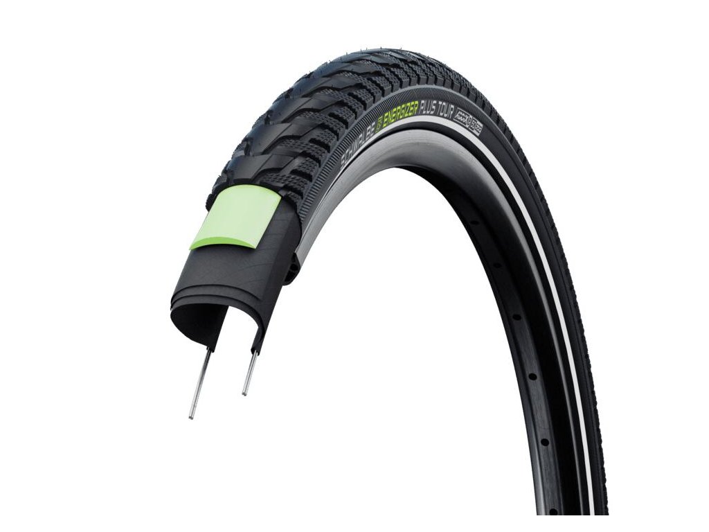Pokud baterie vydrží. Nekonečné potěšení z jízdy s e-touringovým specialistou Energizer Plus Tour. S 3mm GreenGuardem na stejné úrovni bezpečnosti jako Energizer Plus, ale se silnějším přepracovaným trekingovým profilem, který se dříve osvědčil na našem Marathonu GT Tour jako ideální společník pro e-výlety na zpevněných cyklostezkách, ale i mimo ně. Samozřejmě s vysoce kvalitní konstrukcí (kostra 67 EPI), specializovanou směsí Energizer a certifikací ECE-R75 pro e-kola všech tříd.Doplňkové parametry