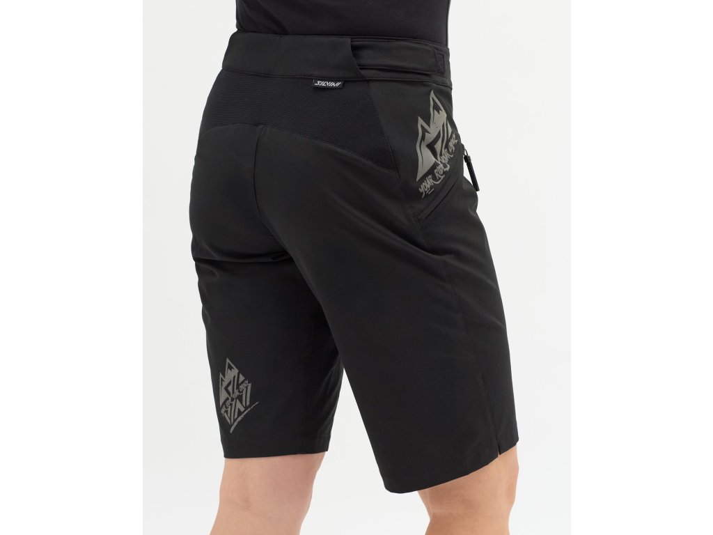 Dámské enduro kraťasy z pružného a prodyšného materiálu Woven stretch. Střih kraťasů je volný a zadní část je vyvýšená. V pase je možnost stahování na suchý zip a na bocích jsou dvě zipové kapsy.Doplňkové parametry