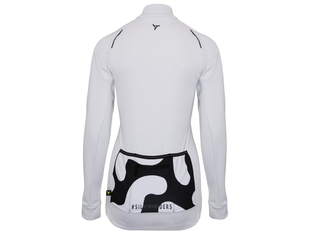 Dámský zateplený cyklo dres s dlouhým rukávem, vyrobený z hustě tkaného materiálu POWERtherm, je lehce odolný vůči větru. Zvýšený límec efektivně chrání krk. Nechybí zadní praktická trojkapsa.Doplňkové parametry