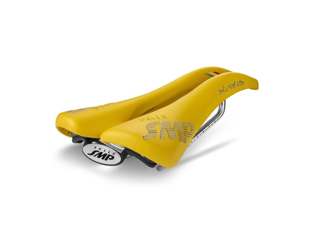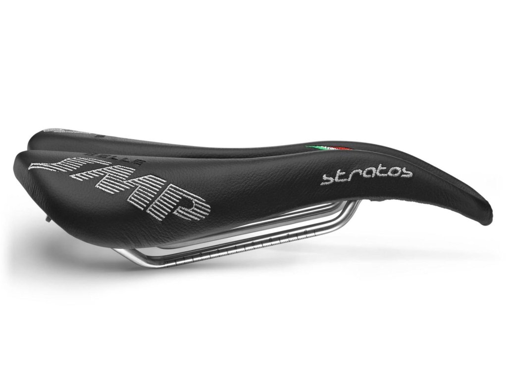 Tento model je vhodný pro intenzivní trénink i volnočasové využití. Doporučeno pro silniční, MTB cyklistiku a triatlon. Využívá skorepinu kompozitového modelu se středně silným polstrováním. V černé verzi je potaženo pravou kůží, v bílé materiálem Lorica. Jedná se o univerzální model vhodný pro středně širokou pánevní oblast. V oblasti zvýšeného kontaktu má sedlo elastomerové výstelky. S patentovanými prvky jako jsou centrální kanál, originální špicka ve tvaru orlího zobáku nebo zvednutá zadní cást tvoří neprehlédnutelný aerodynamický celek. Sedlo kombinuje nízkou hmotnost a komfort polstrování s malou šířkou. Stratos je ideálním řešením mezi modely Evolution a Glider. Šířka sedacích kostí: od 9,0 do 12,0 cm Úroveň polstrování: střední Rozměry a hmotnost Šířka: 131 mm Délka: 266 mm Hmotnost: s kolejnicí AISI 304: 280 g Polstrování: Pěnový elastomer Povrch: Pravá kůže Tělo: carbonem vyztužený nylon 12 Kolejnice: nerezová trubka AISI 304 o průměru 7,1 mmDoplňkové parametry