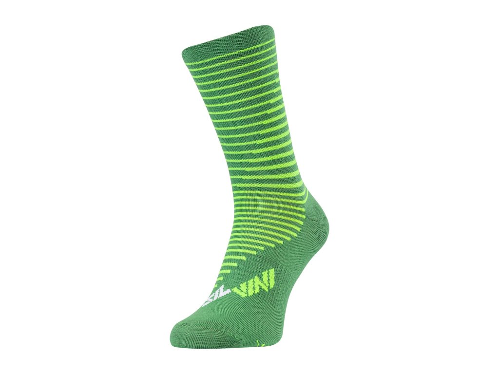 Vysoké unisex cyklistické ponožky ze směsi bavlny (75 %), prolenu (15 %) a elastanu (10 %). Jsou anatomicky tvarované a vyztužené na špičce i patě. Ponožky jsou příjemné na noze a dobře sají pot.Doplňkové parametry