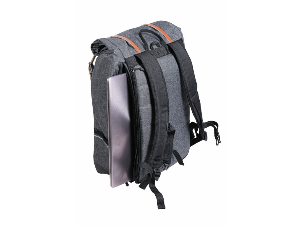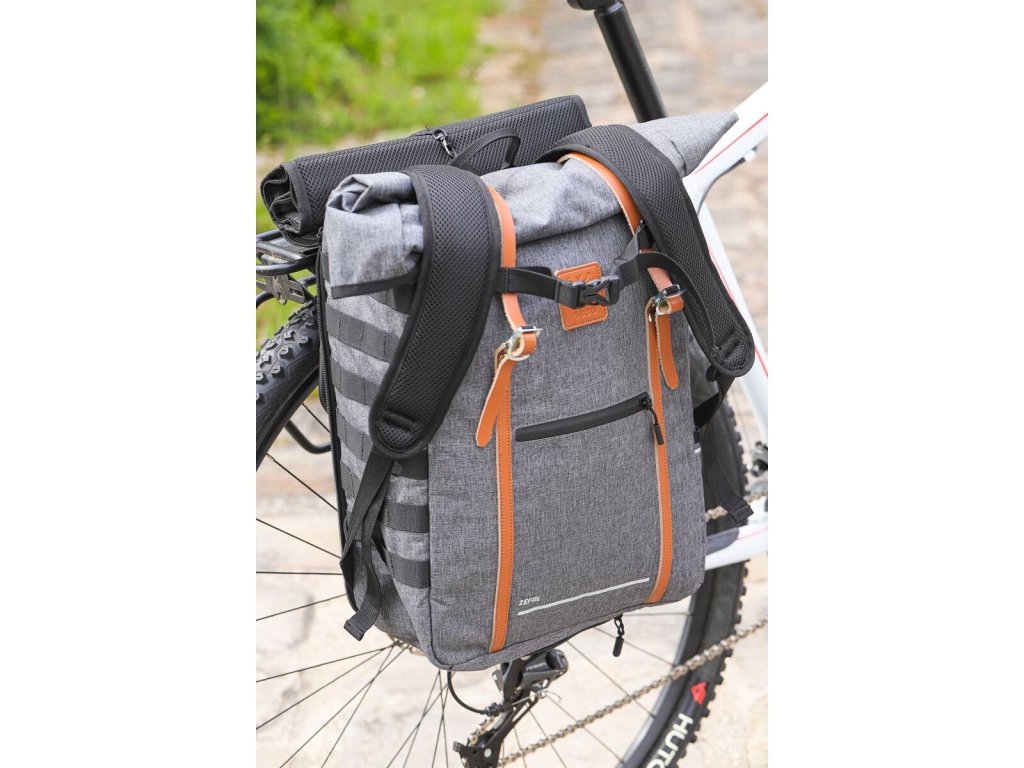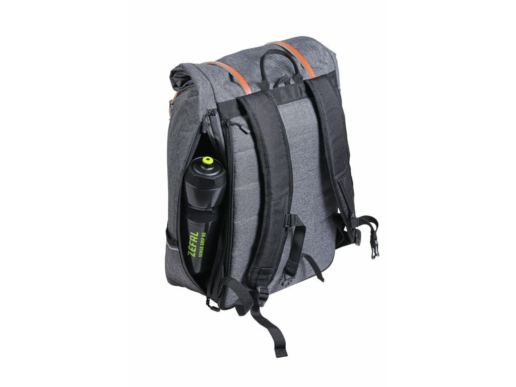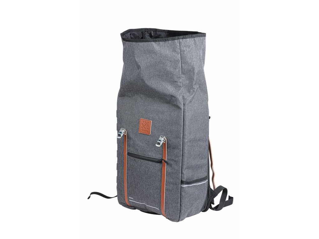 Městský batoh Zéfal Urban Back Pack je stylový cyklistický batoh objemu 27 litrů, pro každodenní výlety na kole. Je vybaven jednoduchým a univerzálním upevňovacím systémem a lze jej přepravovat na nosiči zavazadel. Je odolný a praktický a je navržen tak, aby se do něj vešel 15ti palcový notebook , nebo velký objem menších předmětů. Roll top uzavření s koženými pásky umožňuje přístup do hlavní přihrádky bočním otvorem a snadný přístup k notebooku. Je vybaven další vnitřní přihrádkou a malou vnější kapsou.Vodotěsný zip. Na jedné straně popruhy umožňují připevnění U-zámku. Pod taškou je elastická pláštěnka, kterou lze v případě deště rozvinout a chránit tašku.Hrudní popruh je pro větší pohodlí výškově stavitelný.Doplňkové parametry
