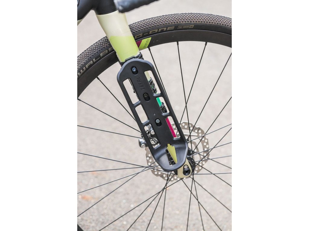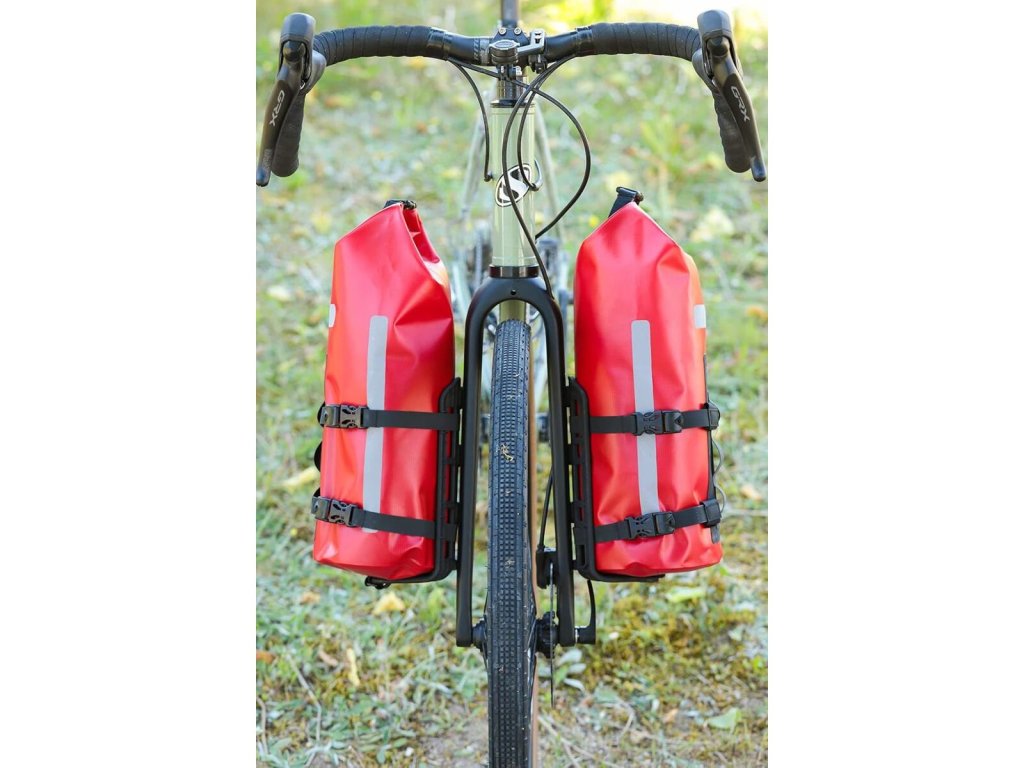 VODOTĚSNÝ VAK A UNIVERZÁLNÍ DRŽÁK NA VIDLICE Sada se skládá z vodotěsné brašny, polyamidového držáku a tří univerzálních montážních čepů. Z Adventure Fork Pack lze namontovat na jakýkoli typ vidlice (pevnou nebo odpruženou a z jakéhokoli materiálu). Brašna drží na místě pomocí tří popruhů s háčky a smyčkami, které zajišťují, že i to nejtěžší vybavení lze bezpečně přepravovat po nerovném terénu. Zařízení je na kole namontováno vyváženým způsobem, je lehčí a méně náročné na údržbu, méně těžkopádné než tradiční nosič zavazadel a je ideální pro dlouhé turistické výlety nebo dobrodružství na kole. VODĚODOLNOST - svařovaná brašna z voděodolného materiálu a s rolovacím uzávěrem UNIVERZÁLNÍ - Kompatibilní s pevnými i odpruženými vidlicemi (Ø16 až 36 mm), se závitovými čepy nebo bez nich. Nastavitelná výška díky 4 upevňovacím otvorům. STABILITA - Brašna je zajištěna třemi samosvorkami. VIDITELNOST - Reflexní boční pruhy pro lepší viditelnost při jízdě v noci.Doplňkové parametry
